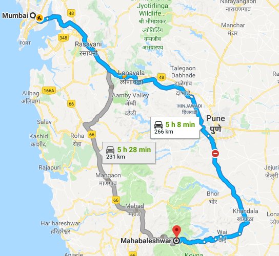 When you look for the route from Mumbai to Mahabaleshwar on Google maps you get the following two options.
